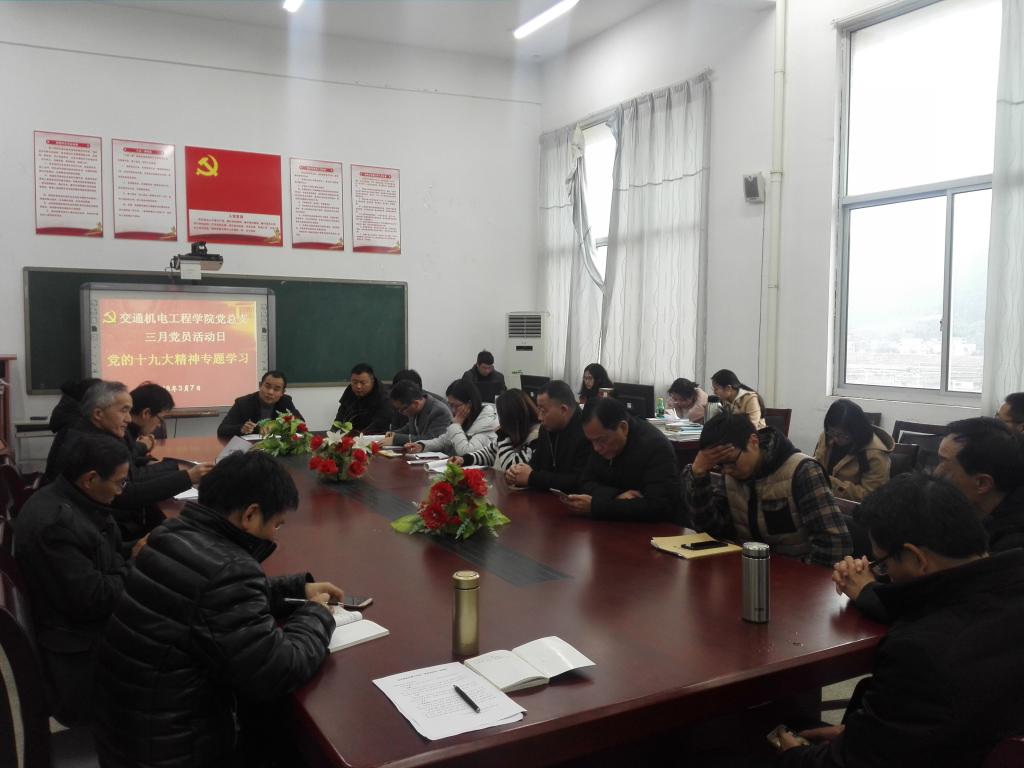 3月7日下午,交通机电工程公司党总支组织全体党员开展三月党员活动日,专题学习党的十九大有关精神。