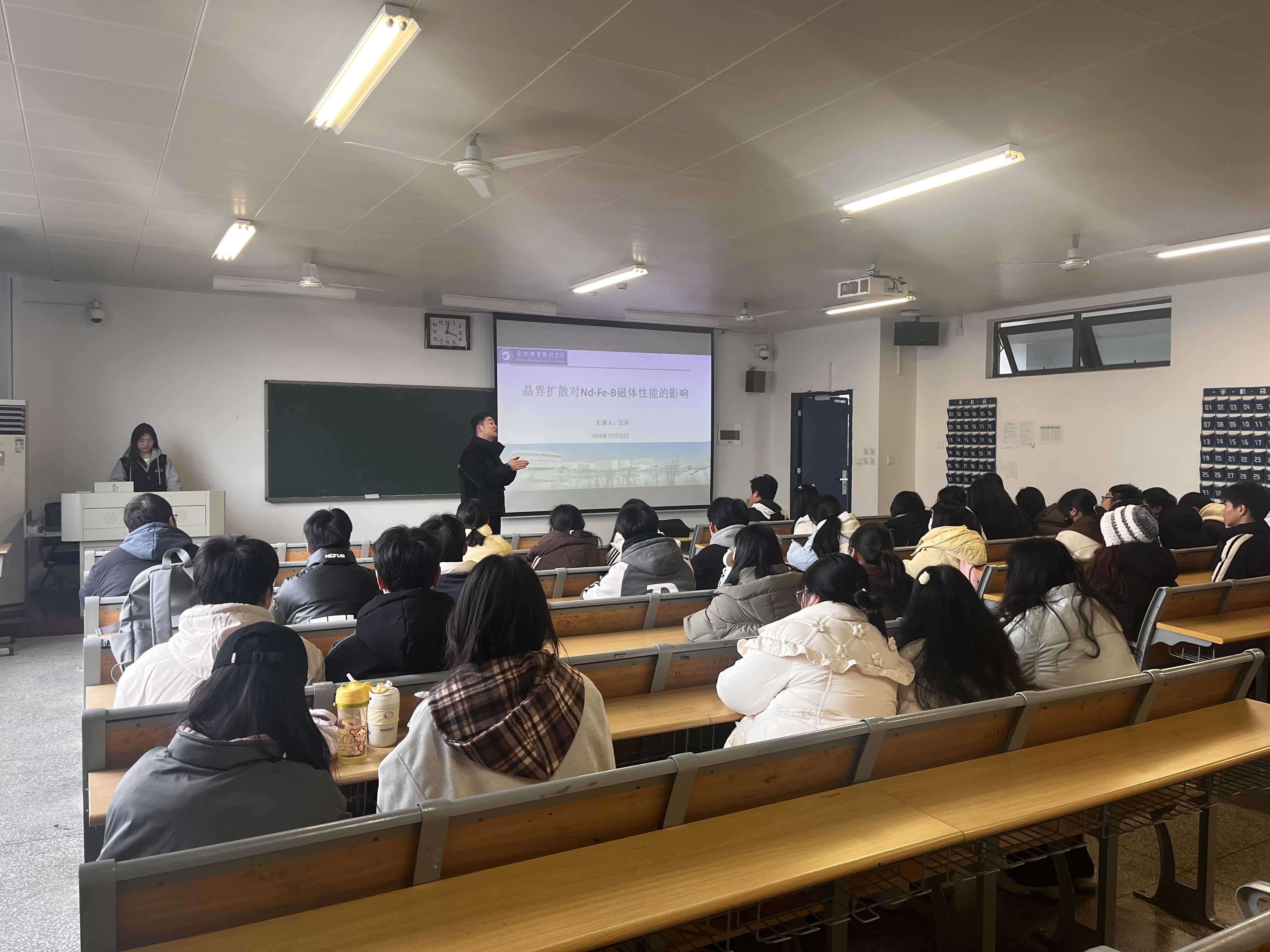 为加强对稀土永磁领域的认识、开阔师生科研视野,跟踪最新科研成果。2024年12月25日下午,由公司青年教师汪洋主讲的学术讲座在汇心湖校区教学南楼511教室顺利开展,本次讲座以“晶界扩散对Nd-Fe-B磁体性能的影响”为主题,学院各专业员工参加。