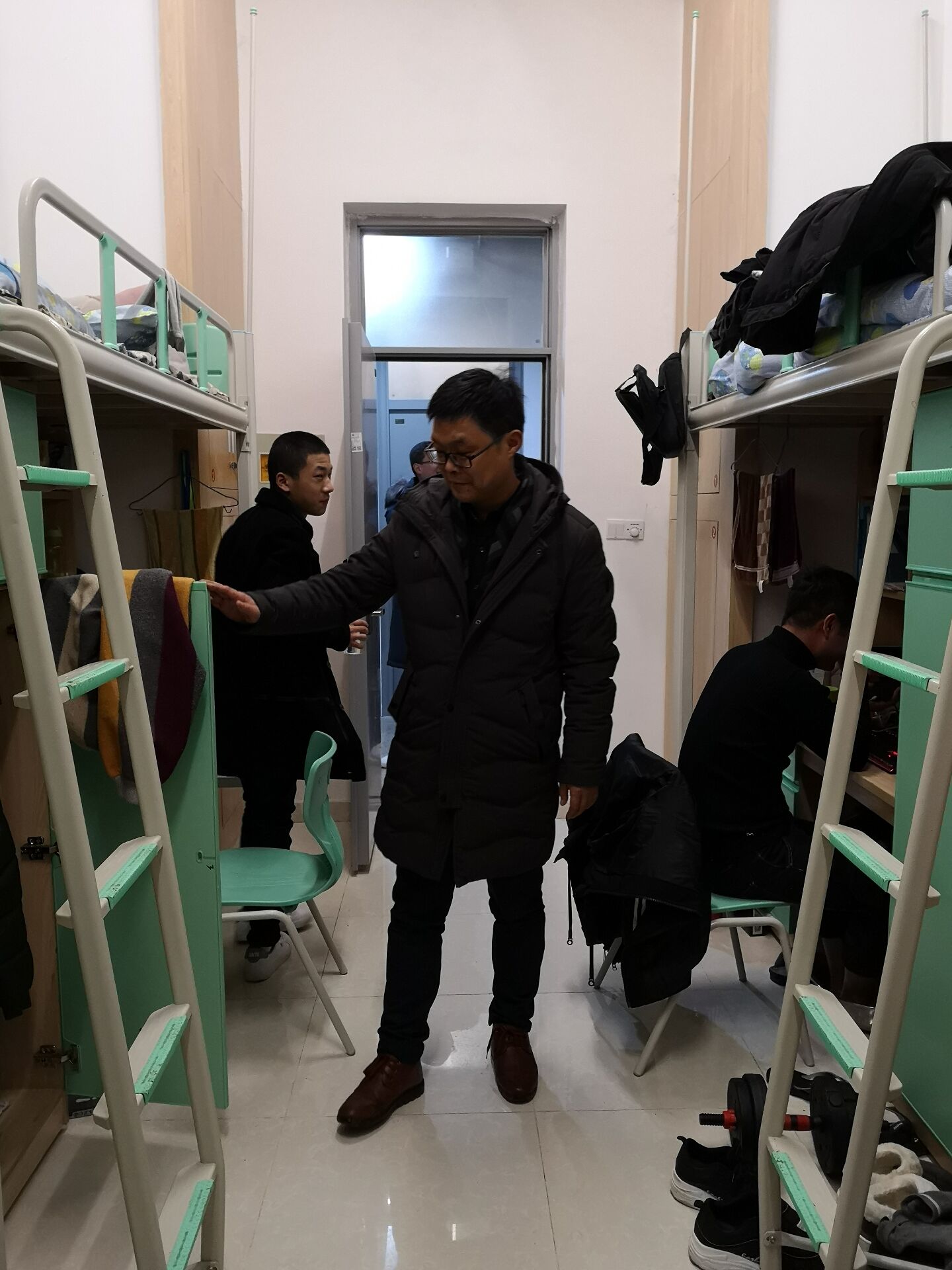 11日晚,王克勇书记亲率所有班主任来到英国上市公司365所在宿舍楼层,一层层的看、一间间的查、一个个的问,将宿舍“三问三查”工作做足做实。王克勇书记首先代表英国上市公司365向全体同学送去新年问候,希望同学们在接下来的考试中取得好成绩,随后向那些愿意放弃假期留校参加大赛培训的同学送去真挚慰问和真心祝福,最后也对本学期宿舍评分较低的宿舍、出现过违规的宿舍进行了“问责”,对他们现场进行了批评和教育。