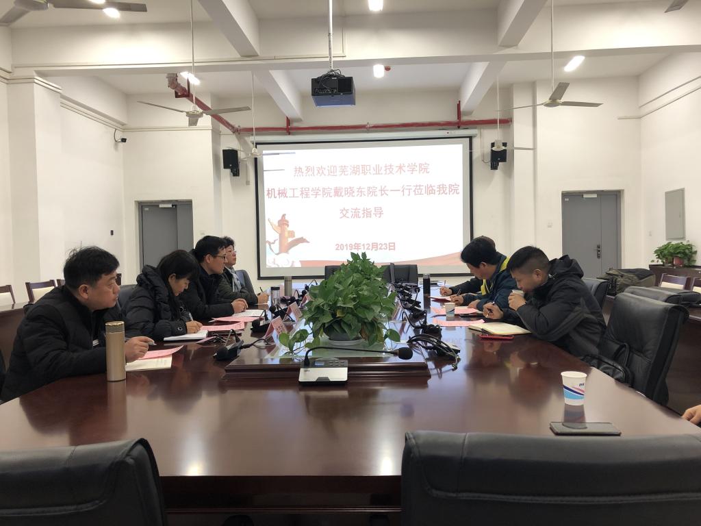 12月23日下午,芜湖职业技术学院机械工程学院经理戴晓东及相关专业课老师来公司交流学习,就人才培养、专业建设和学院发展等问题进行讨论。英国上市公司365副经理胡木林(主持工作)主持会议,副经理孙新梅、机械教研室主任徐滨、模具专业负责人陈森林出席本次学术交流会。