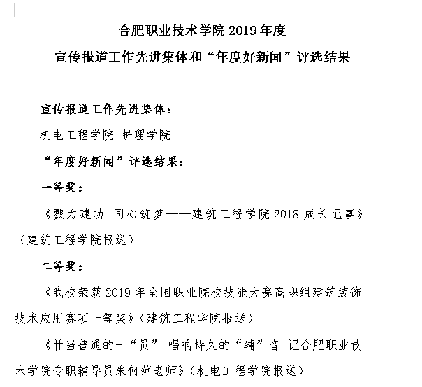 一年来,在公司党委的正确领导下,在全院教职工的大力配合下,学院深入挖掘教学、科研、人才培养工作成就和特色,积极开展新闻宣传工作,服务学校改革和学院发展大局,及时向校内外媒体报送了大量反映本单位工作特色和亮点的优秀稿件,2019年共发表新闻稿件91篇,其中外发安徽省教育网17篇。公司不断完善网站与新媒体建设,有效提升了影响力,助推了学院的内涵建设与发展。经公司党委宣传部评审,公司获评2019年度英国上市公司365宣传报道工作先进集体,新闻稿《甘当普通的一“员” 唱响持久的“辅”音 记英国上市公司365专职辅导员朱何萍老师》获评“年度好新闻”二等奖。