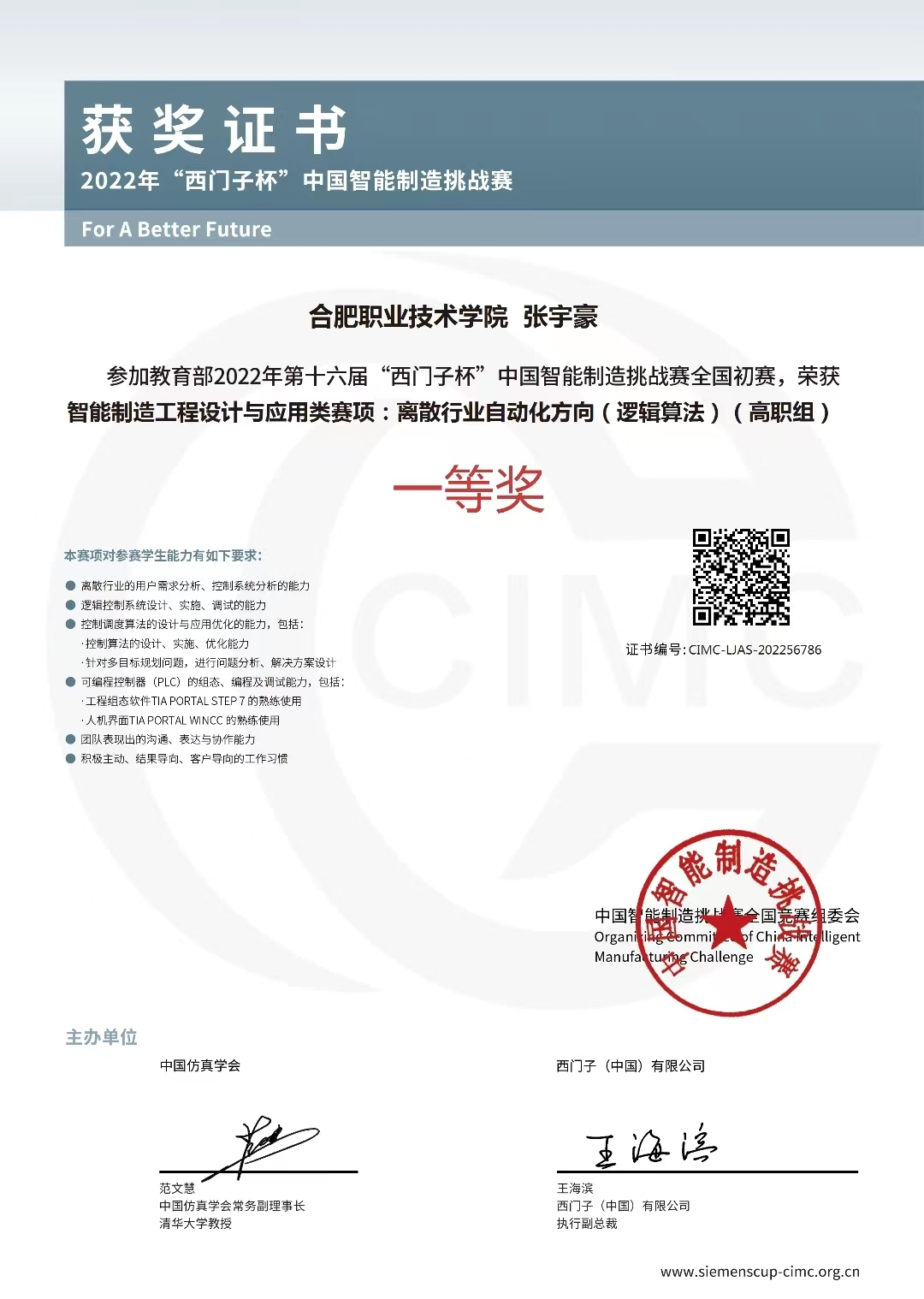 2022年9月3日-4日,第十六届“西门子杯”中国智能制造挑战赛华东三赛区暨全国初赛比赛顺利举行。公司英国上市公司365张宇豪、张子博、宁骏等三位同学在胡经纬、张君继两位老师的共同指导下,获得离散行业自动化(逻辑算法)赛项全国初赛一等奖。