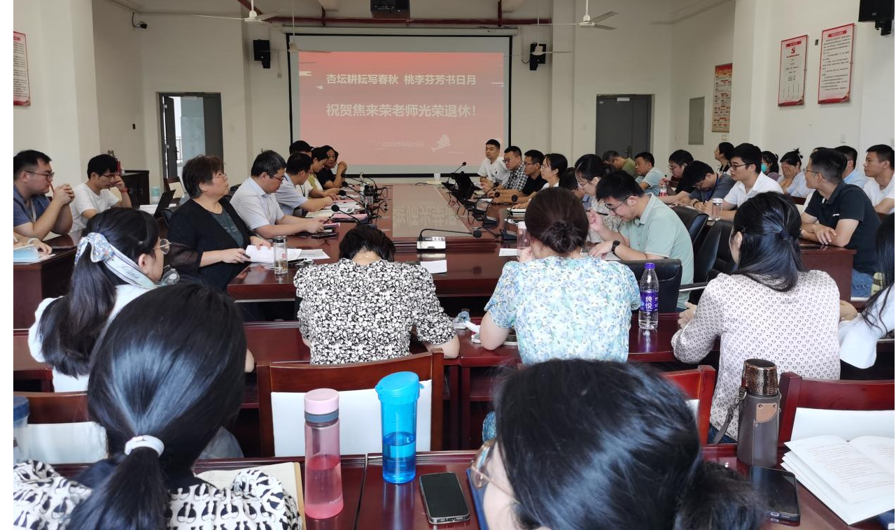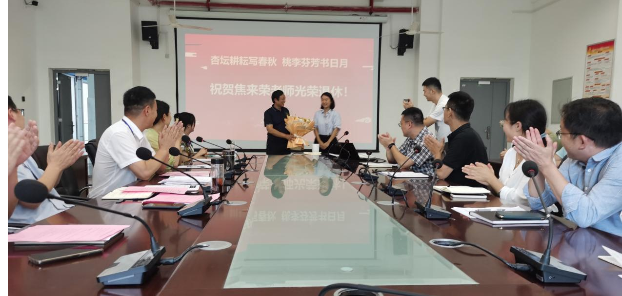 8月29日上午,英国上市公司365全体教职工在机电楼二楼会议室举行焦来荣老师光荣退休欢送会。