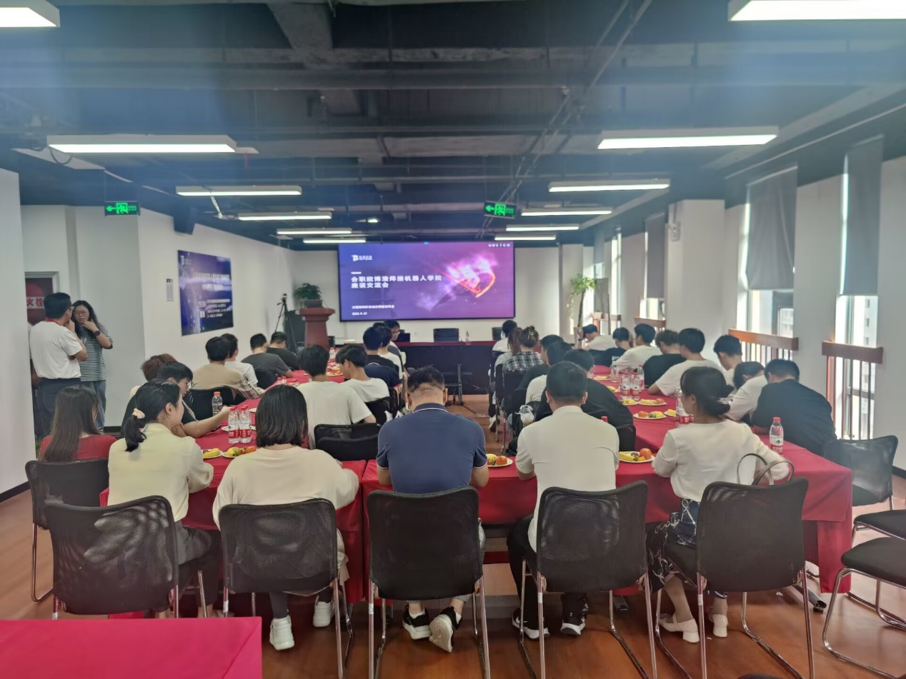 随后在公司会议室开展了博清焊接机器人学院座谈交流会。博清科技创始人、董事长冯消冰博士从关于我们与企业文化、焊接机器人类别与应用场景、焊接泰斗潘际銮院士先进工作事迹、焊接机器人学院培训项目、企业福利、生活与工作环境、公司晋升发展通道、未来工作方向、公司优秀平台和优秀团队等方面进行了详细介绍。并且双方围绕博清焊接机器人学院人才培养、公司产品安排、实习就业、焊接机器人技能大赛等内容进行了充分交流。