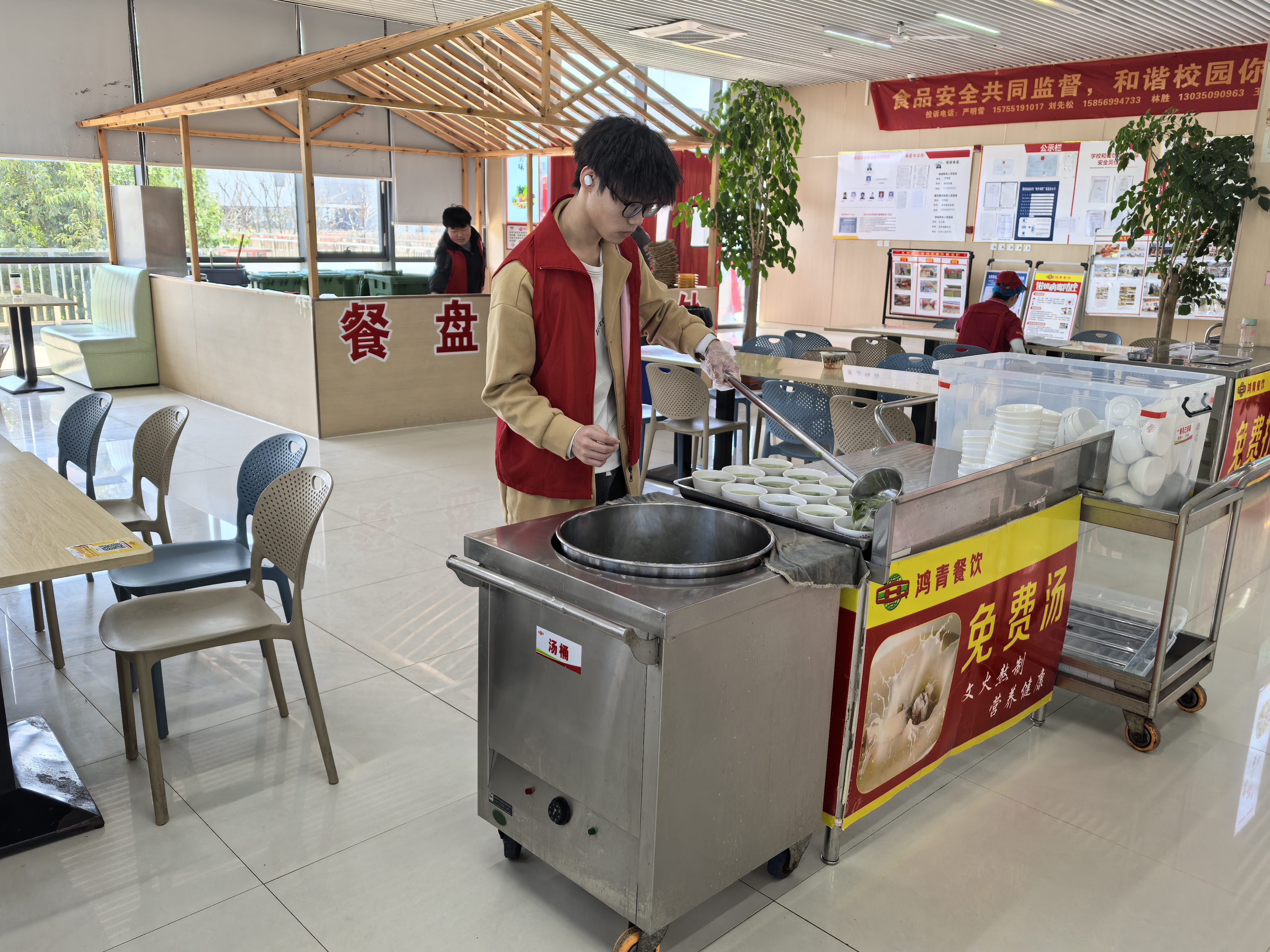 活动开始,英国上市公司365团总支对志愿者进行了分组培训与任务分工,明确各小组职责,分为“食堂服务组”“车辆整理组”“生活帮扶组”三支队伍,分头行动。食堂服务组的志愿者们在食堂一、二楼忙碌有序。他们协助工作人员清理餐桌、擦拭地面,针对餐后残留食物和餐具及时回收整理,确保就餐环境干净卫生。此外,他们在免费汤品区为同学们提供暖心服务。