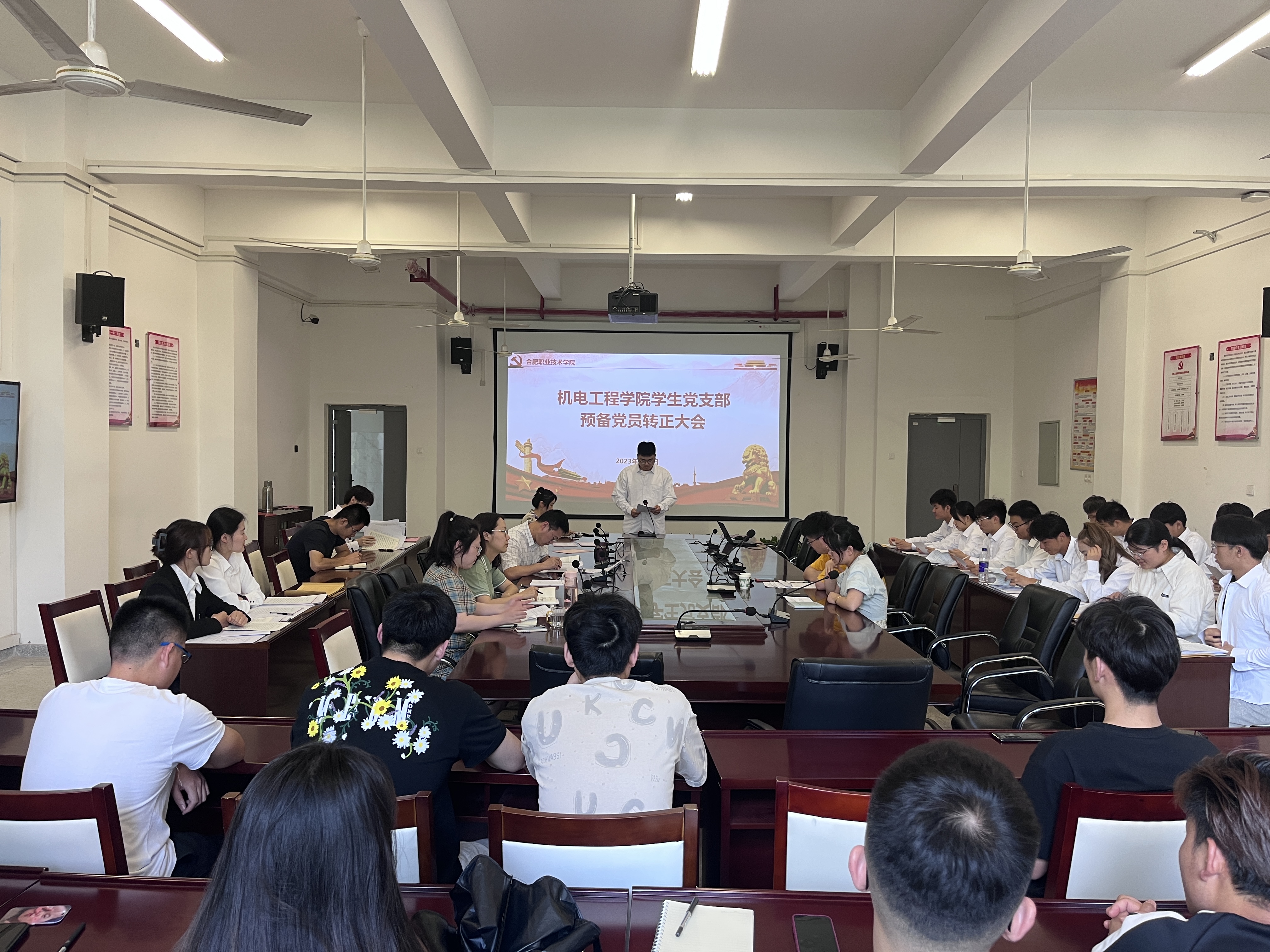 6月8日下午,经公司党总支批准,公司员工党支部在机电楼二楼召开了预备党员转正大会。会议通过了陈金富等20名同志预备期满转为中共正式党员的决议。本次会议由支部书记张开主持,学院员工党支部全体党员、入党介绍人、预备党员参加了此次大会。