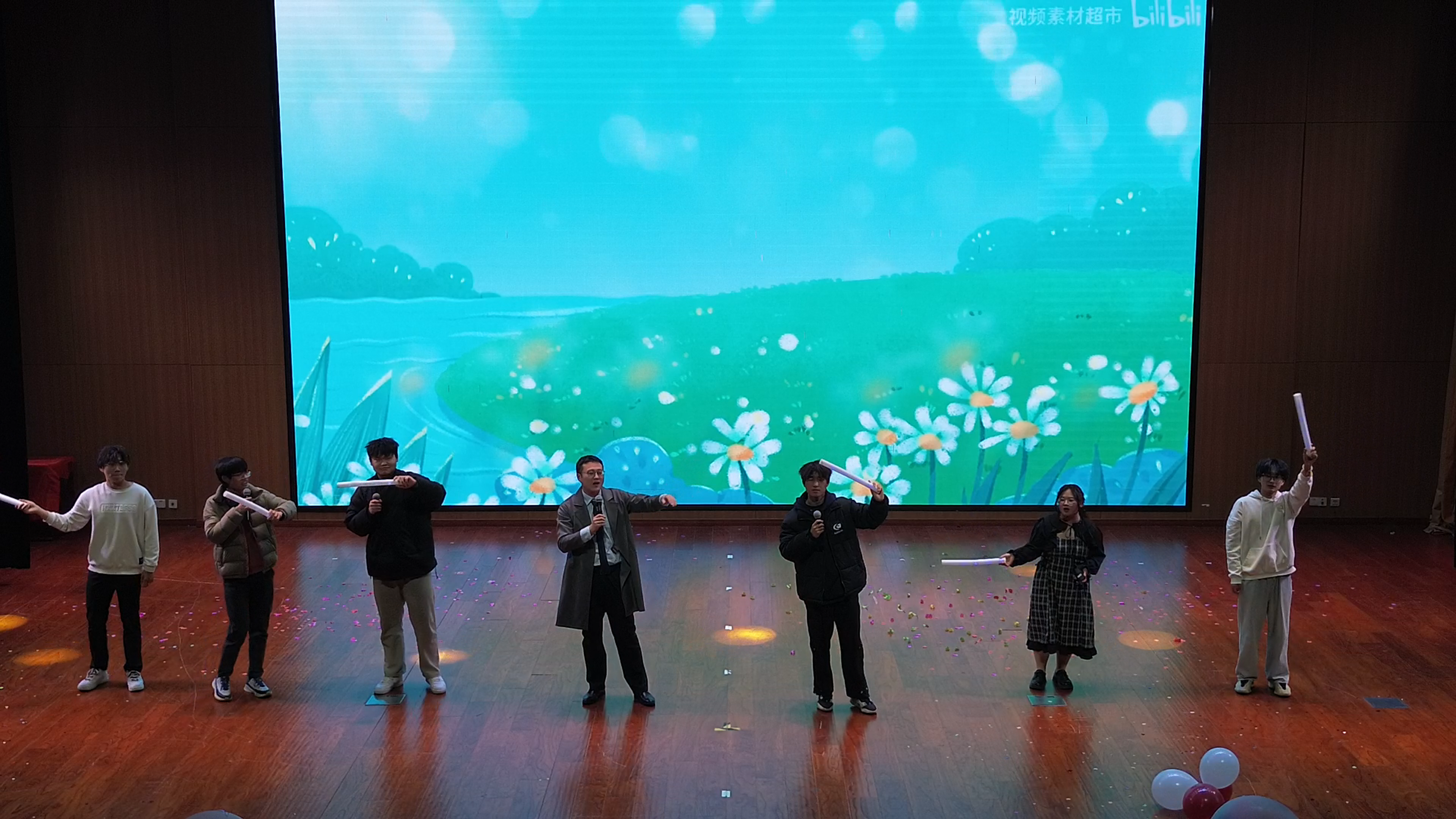 晚会开始前,大屏幕上播放了学院领导、老师对同学们的新年寄语。视频里回顾了2023,又展望了2024,激励学院师生在新的一年里成为更好的自己,共同致力于学院的高质量发展,继续奔跑在奋斗之路上。