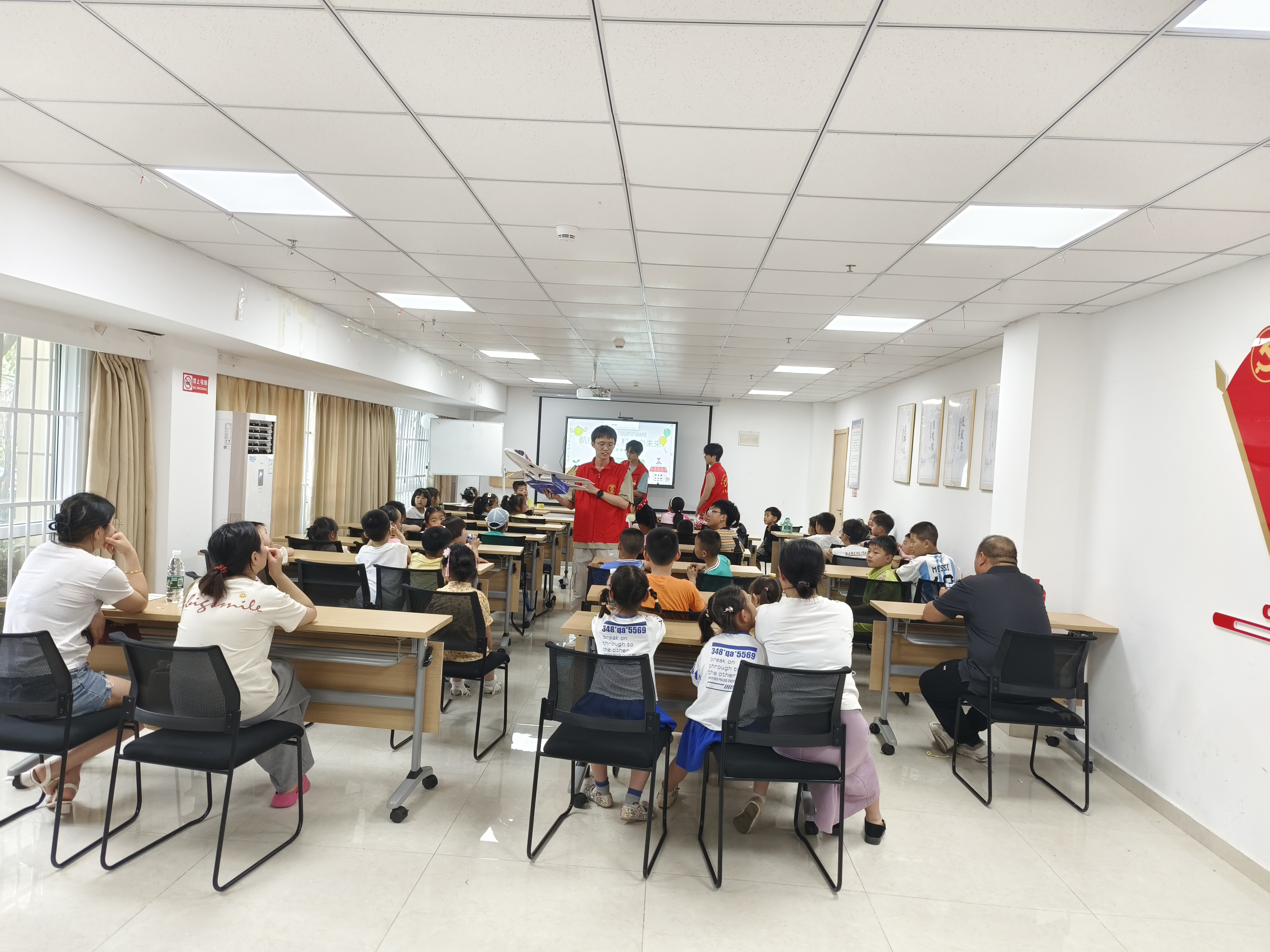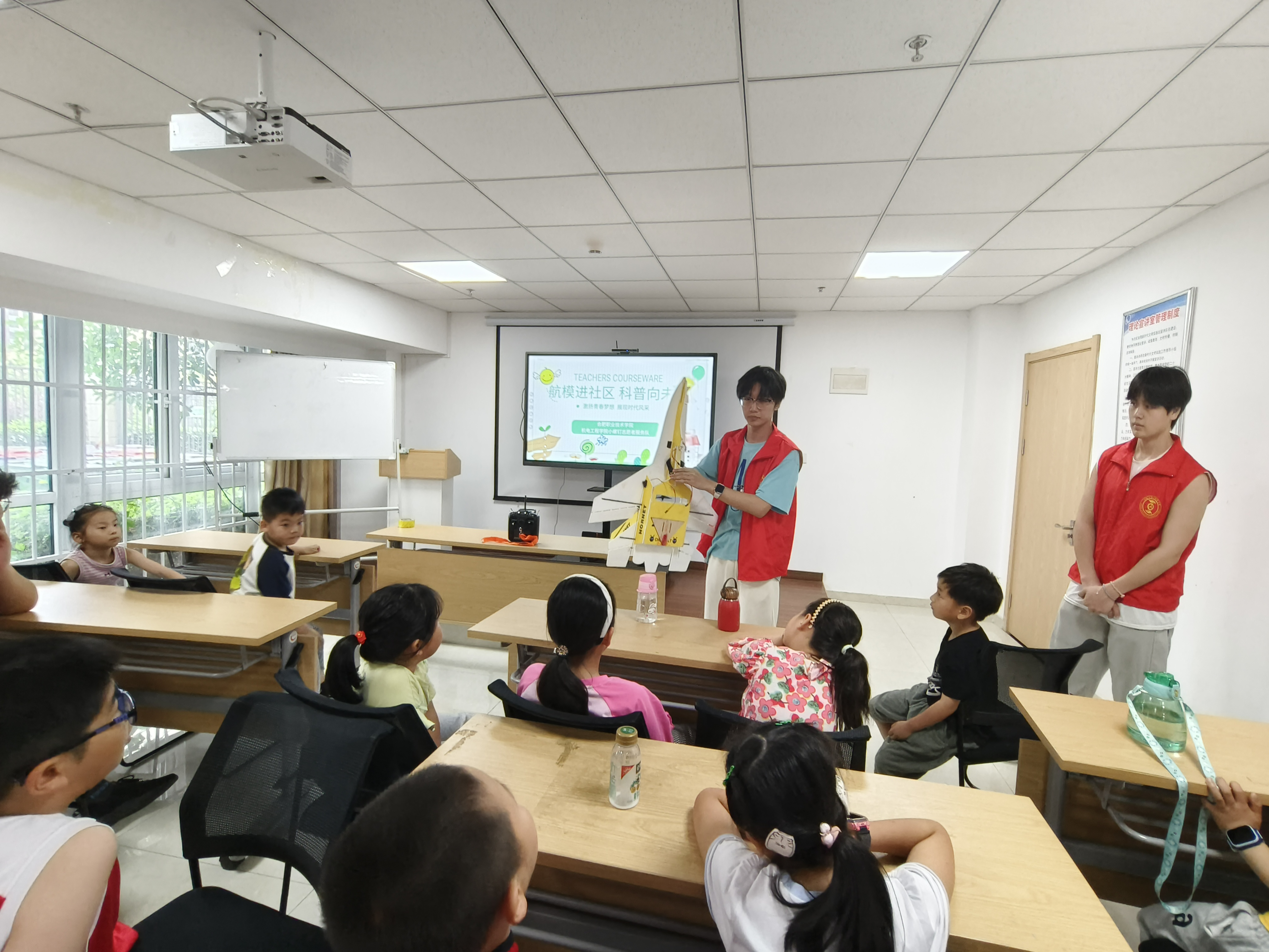 活动筹备阶段,社区承办方通过社交媒体、海报等多种形式在小区里进行了广泛宣传,获得了社区居民的热烈反响。活动当天,志愿者们首先为小朋友们播放了航模飞行视频,通过精彩的航模飞行画面,激发了他们对航模的浓厚兴趣。紧接着,航模协会成员为中小员工详细讲解了航模的组成部分、遥控器操作方法以及飞行技巧等基础知识,让小朋友们对航模有了更深入的了解。