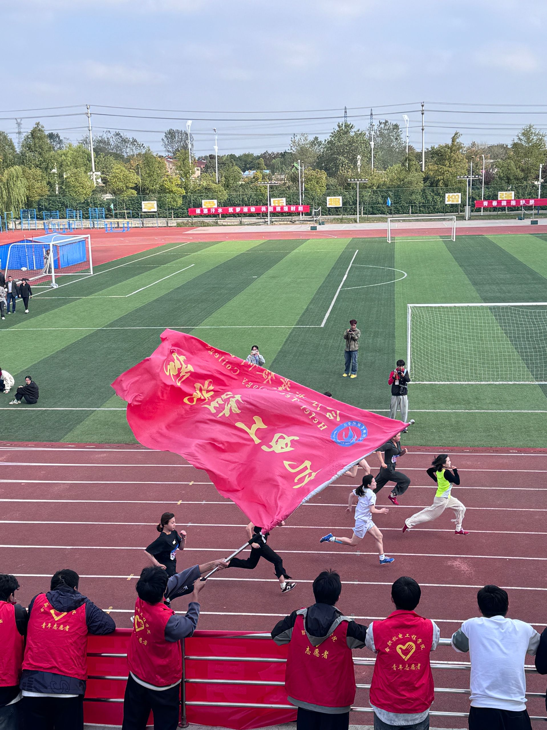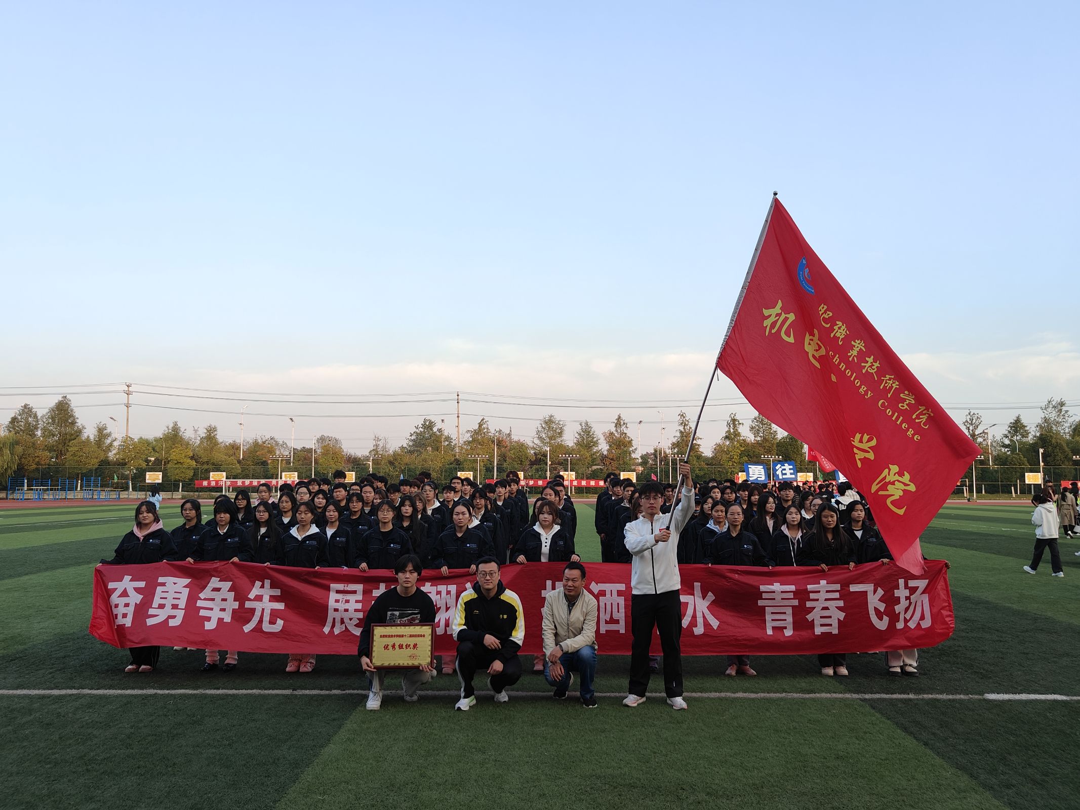 秋风送走酷暑,却压不下运动场上的火热。赛场上学院的运动员们如猎豹般飞驰,似雄鹰般翱翔。他们用汗水书写青春,用拼搏诠释梦想。每一次冲刺,都是对自我的挑战;每一次跨越,都是对极限的突破。他们的身影,是运动场上最靓丽的风景线。赛场之外,志愿者们的辛勤付出,如春雨润物无声,他们的每一个微笑,都是对集体的至诚奉献;班级拉拉队的热情呐喊,如骄阳下的清凉,他们的每一声加油,都是对运动员的鼓舞激励;老师们的关怀备至,如灯塔指引航向,他们的每一次关注,都是对员工的殷切期望。