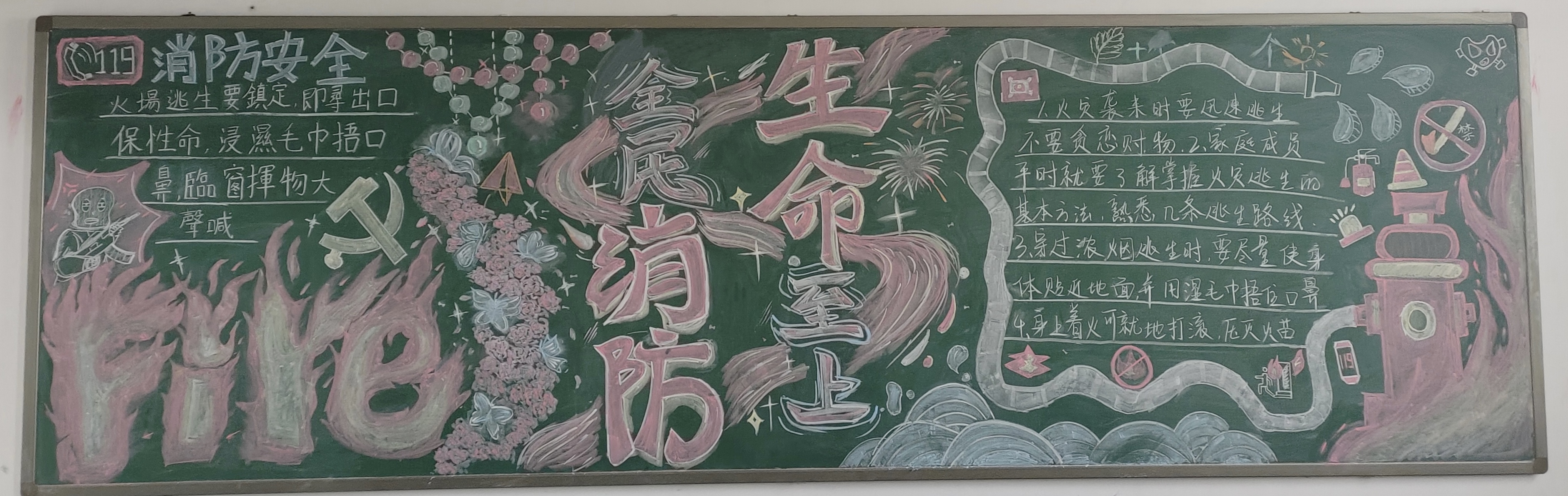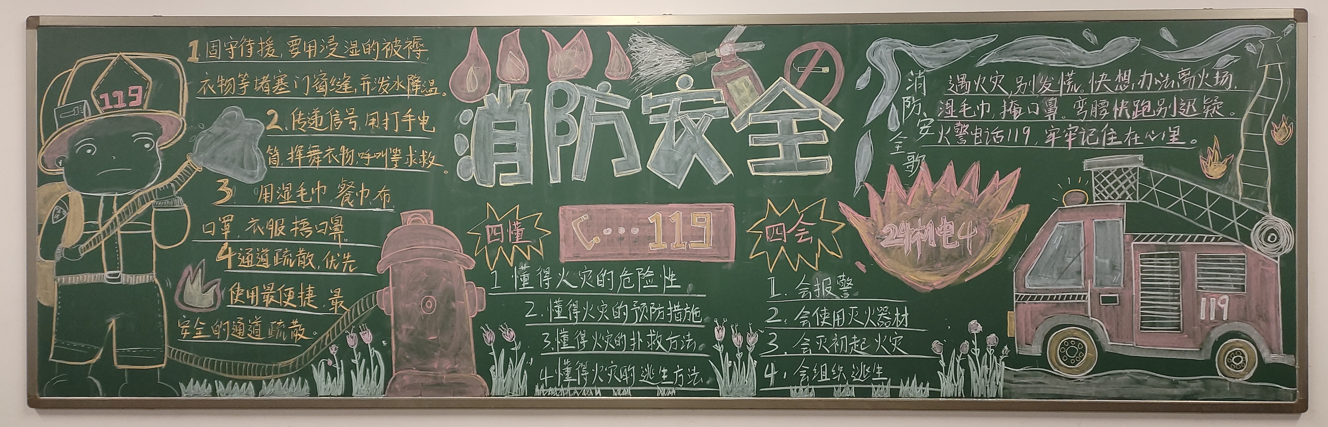每年的11月为全国消防宣传月,为了提高学院师生的消防安全意识,增强员工的自救自护能力,构建和谐安全的校园环境,公司开展了消防安全主题的黑板报绘制评比活动。