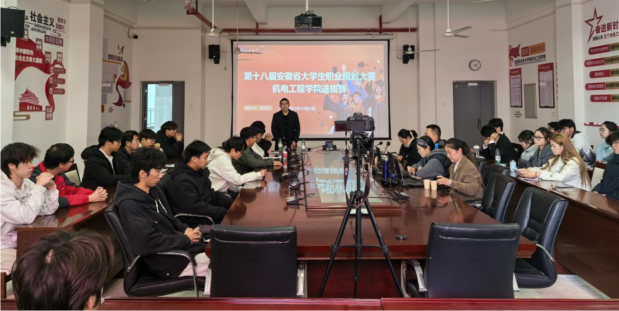为加强员工生涯教育和就业指导,增强老员工职业规划意识,促进高质量充分就业,11月21日,公司举办了老员工职业规划大赛决赛。通过前期44名预赛参赛选手的选拔,来自23级、24级的18名同学参加了最终决赛,决赛邀请员工处和兄弟院系的就业指导老师担任评委,该公司党总支副书记宋忠春主持比赛。