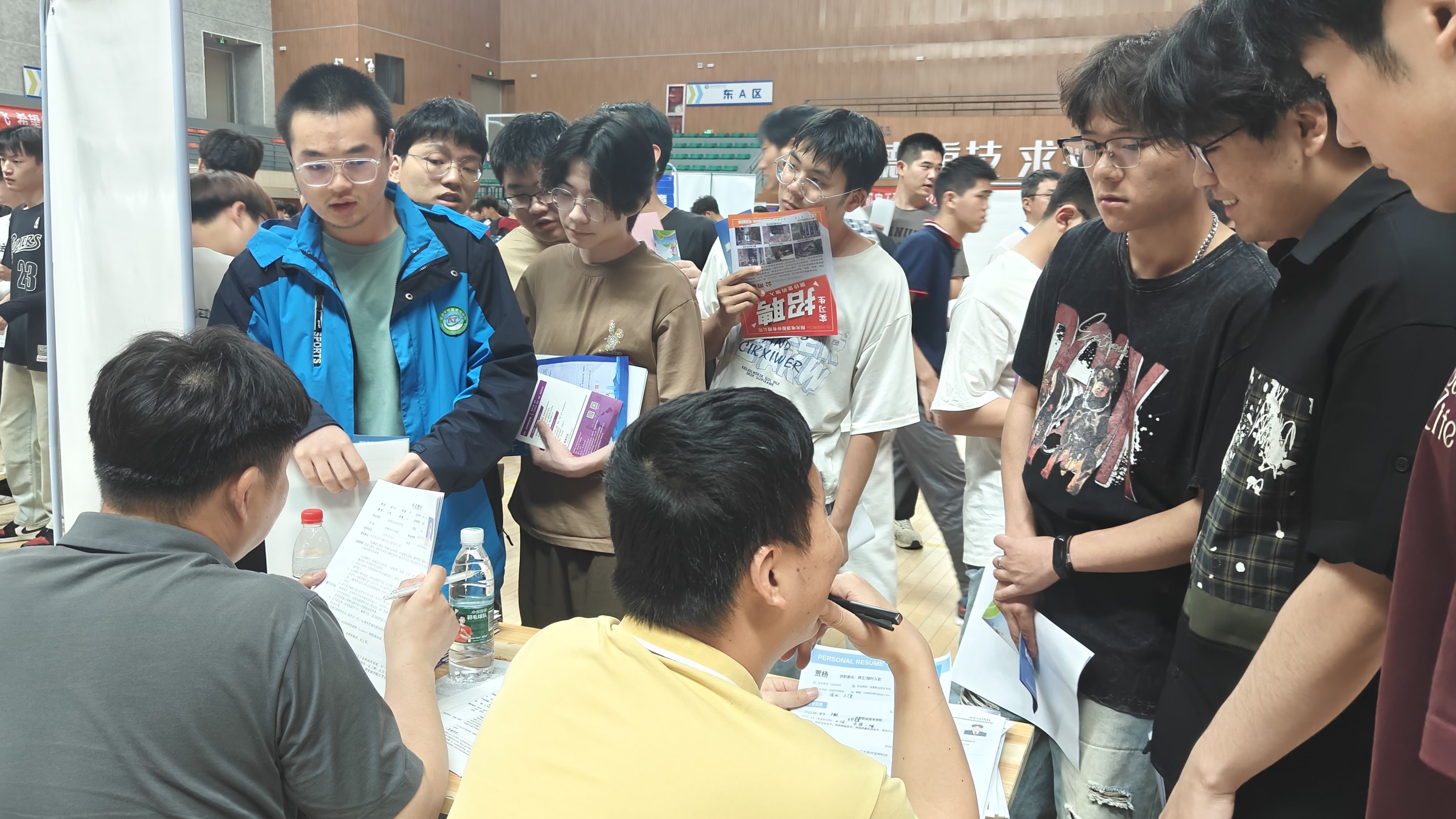 双选会现场,前来应聘的同学均携带精心制作的简历,主动与用人单位交流沟通,积极寻找心仪匹配岗位。各用人单位通过准备充分,通过发放宣传单、展板介绍等方式介绍企业文化、岗位设置、薪资待遇、发展前景等,并通过面对面沟通解答员工实习、就业困惑。
