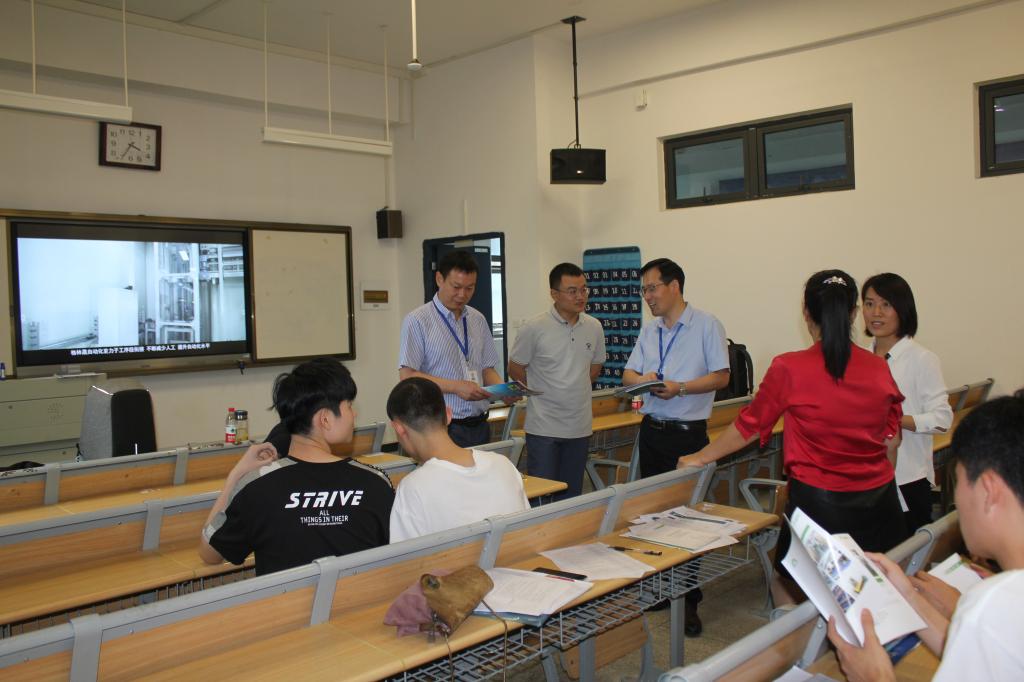 合肥市新站高新区人事劳动局副局长王斌、人力资源服务中心副主任彭俊,经开区人力资源中心企业服务部部长焦妮娜,安徽居巢经开区管委会投资促进局彭琴等在学校员工处处长尹宗平、机电工程公司党总支副书记(主持工作)王克勇、副经理(主持工作)胡木林、副经理孙新梅、副书记丁迎春的陪同下亲临双选会现场,看望用人单位代表,并和参加双选会的员工进行亲切交流。