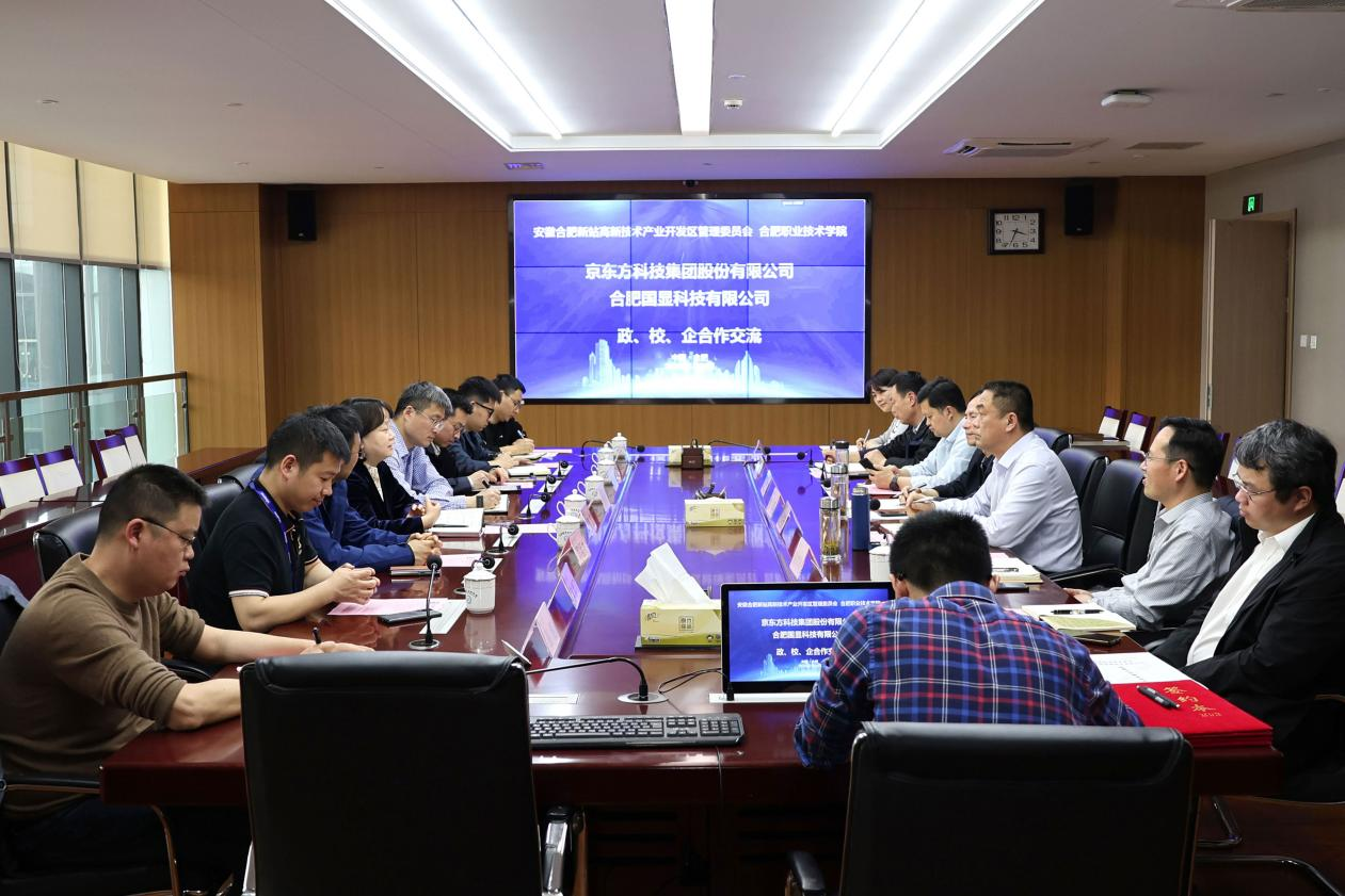 京东方显示技术有限公司人力资源部部长朱锡坤、合肥国显科技有限公司人力资源总监高明杰等企业代表围绕企业情况和未来发展趋势,表达了企业对能解决生产实际问题技术人才的需求,并介绍了校企联合开展现场工程师培养和学员发展通道及成长空间等情况。企业方表示,在政府部门的指导下,将持续推进产教融合、校企合作,打造典范。