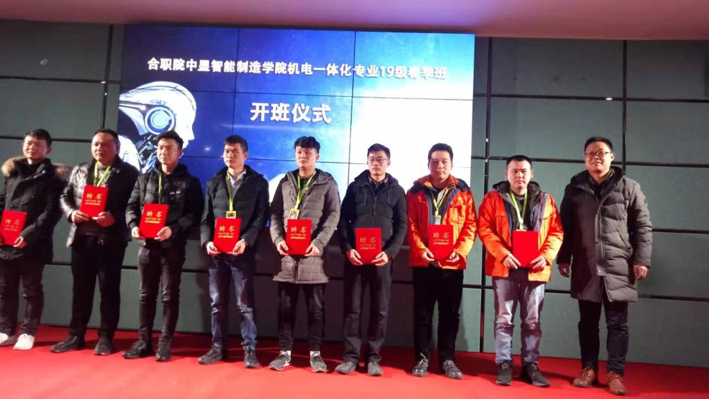 为贯彻执行《国家职业教育改革实施方案》提高技能型人才培养质量和针对性,实现专业设置与产业需求对接,课程内容与职业标准对接,教学过程与生产过程对接,毕业证书与职业资格证书对接,职业教育与终身学习对接,经过几个月的紧张筹备,2019年2月27日下午,合职院中显智能制造学院19级春季班开班啦!开班典礼在中显公司二楼电教室举行,合职院英国上市公司365共有16名员工报名参加电一体化中显班,现已进入顶岗实习阶段。