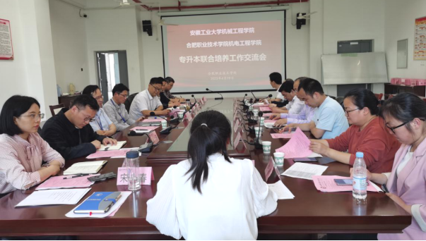 专升本联合培养工作交流会上,该公司党总支书记王克勇对安徽工业大学师生一行表示了热烈欢迎,机械教研室主任王影详细介绍了专业课程设置、团队队伍配比和人才培养方案执行等情况,并提出加强双向交流活动等殷切希望。双方还就员工实习就业、毕业论文撰写、毕业答辩等工作展开深入交流,达成诸多共识。