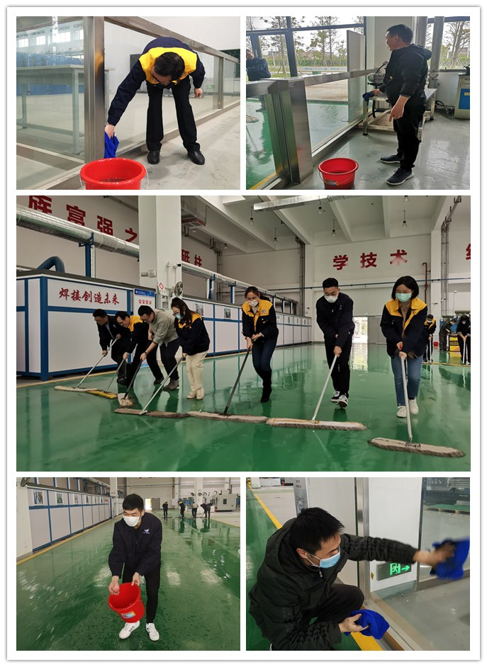 下午,在学院统一号召下,院领导班子带领学院在校教师对机电楼一楼大车间开展了卫生清洁活动。教师们身穿工作服,自带拖把、抹布等工具,化身“最美保洁员”,对车间出入口、地面、实训区、桌椅、门窗、器械设备等区域进行了认真打扫。经过二个多小时的辛苦劳动,在老师们同心协力下的大车间焕然一新。院领导班子表示这样的卫生清扫活动后期还会继续开展,旨在营造一个舒适、安全的环境。这次义务劳动也是机电工程公司党员教师践行“六个一次” 品牌活动 (当一次志愿者、深入一次宿舍、进行一次谈心谈话、做一次有关员工的调查研究、解决一次员工的实习困难、参加一次员工活动)的实际表现,充分体现了党员老师的先锋模范带头作用。