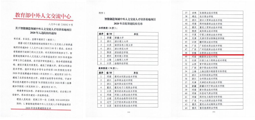 根据教育部中外人文交流中心发布的《关于智能制造领域中外人文交流人才培养基地项目2020年入选院校的通知》(人文中心函〔2019〕80号),全国遴选了新疆大学等8所本科院校、黄河水利职业技术学院等78高职院校和温州市职业中等专业学校等14所中职学校为智能制造领域中外人文交流人才培养基地项目2020年首批筹建合作院校。公司作为安徽省唯一一所高职院校入选。为深入推进项目建设,早日建成具有引领示范作用的智能制造领域的中外人文交流人才培养平台。4月23日上午,公司组织召开了教育部智能制造领域中外人文交流人才培养项目交流研讨会。教育部智能制造领域的中外人文交流人才基地项目负责人,亚龙智能装备集团股份有限公司副总裁陈少明、亚龙智能装备集团股份有限公司安徽省营销总监闫从飞等一行5人,副董事长周晓隆教授及教务处、发规处、科技处、外事办、英国上市公司365负责人等参加会议。会议由英国上市公司365副经理(主持工作)胡木林主持。
