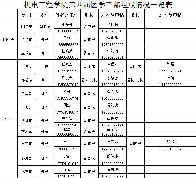 根据《关于开展公司第四届团学干部换届选举工作的通知》文件精神,经个人申报,所在部门推荐,公开竞选,并经竞选评委会审查通过,现将第四届团学干部公示如下: