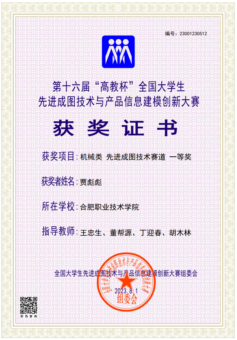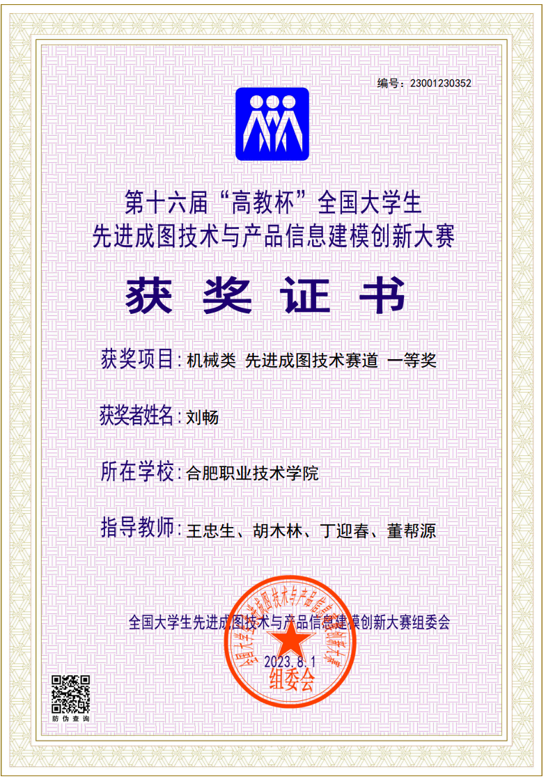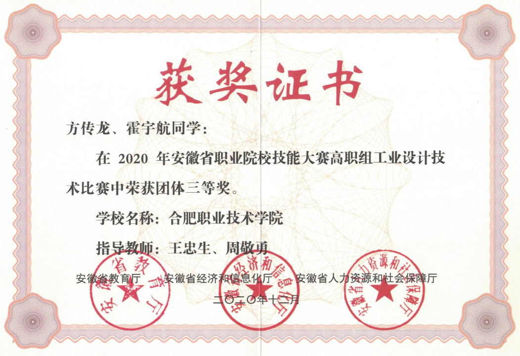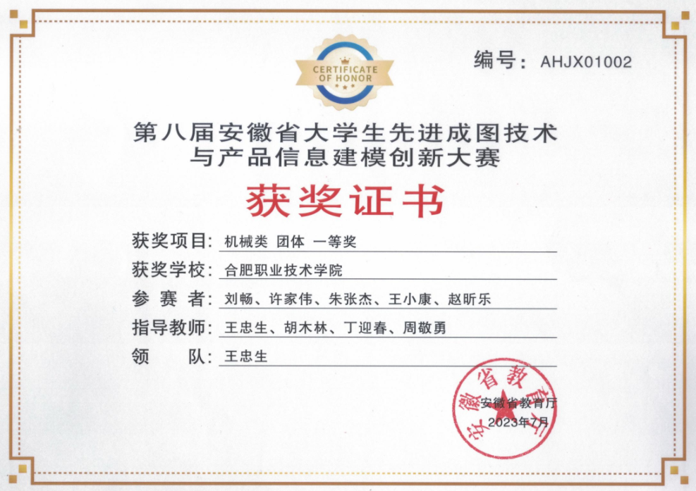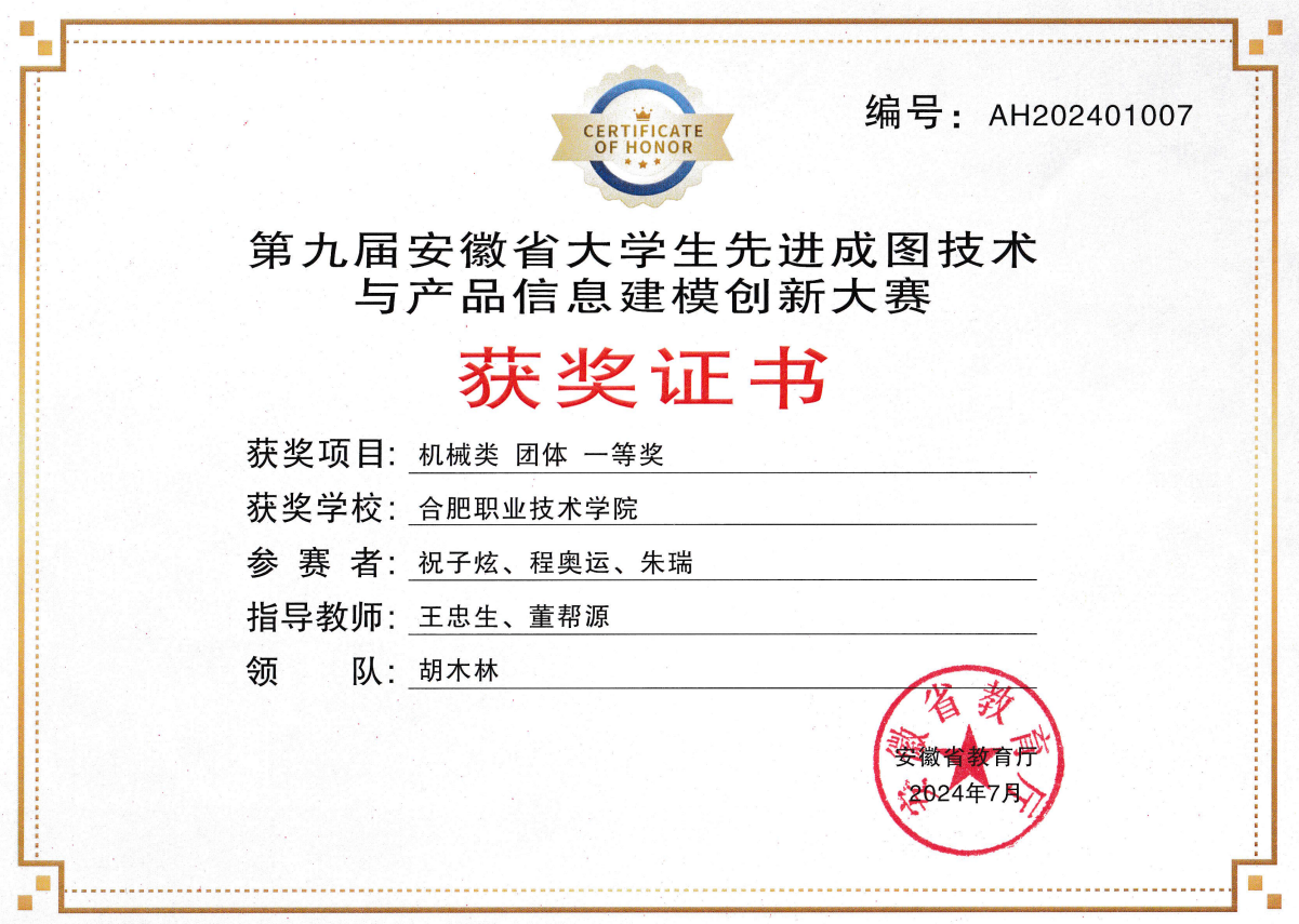 【专业建设成果】最近五年,机械设计与制造专业已建成省级精品课程5项,省级教科研项目36项。专业员工在全国技能大赛赛事中获得一等奖3项,二等奖2项,三等奖2项;在安徽省职业技能大赛等省级赛事中获得一等奖13项,三等奖4项。