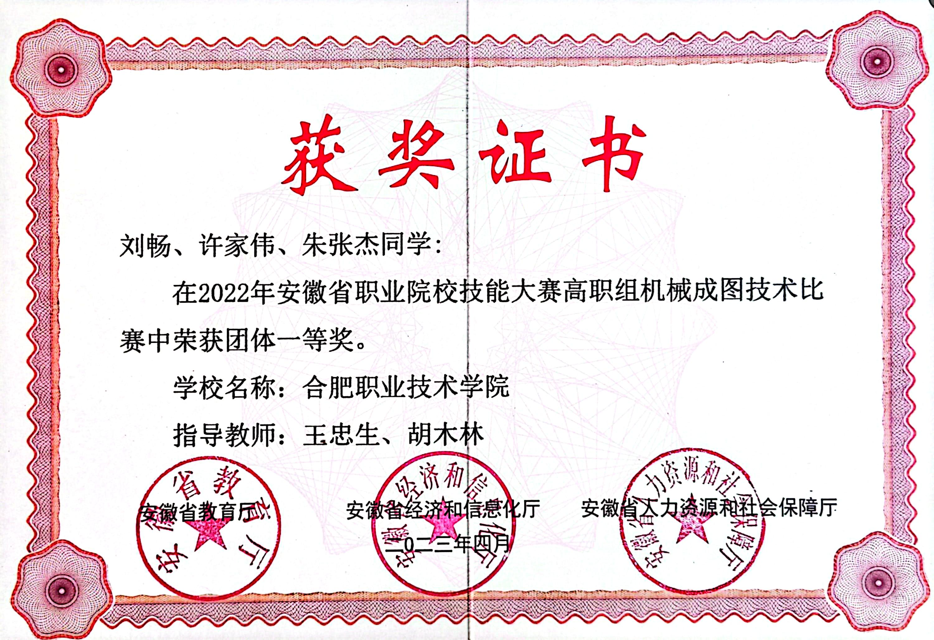 部分技能大赛获奖(证书)