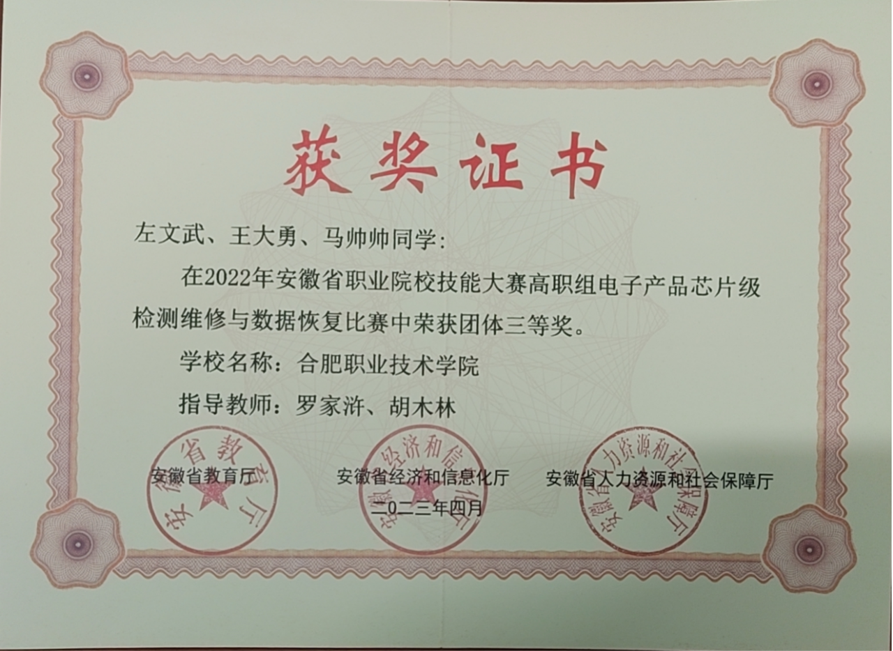 部分技能大赛获奖(证书)