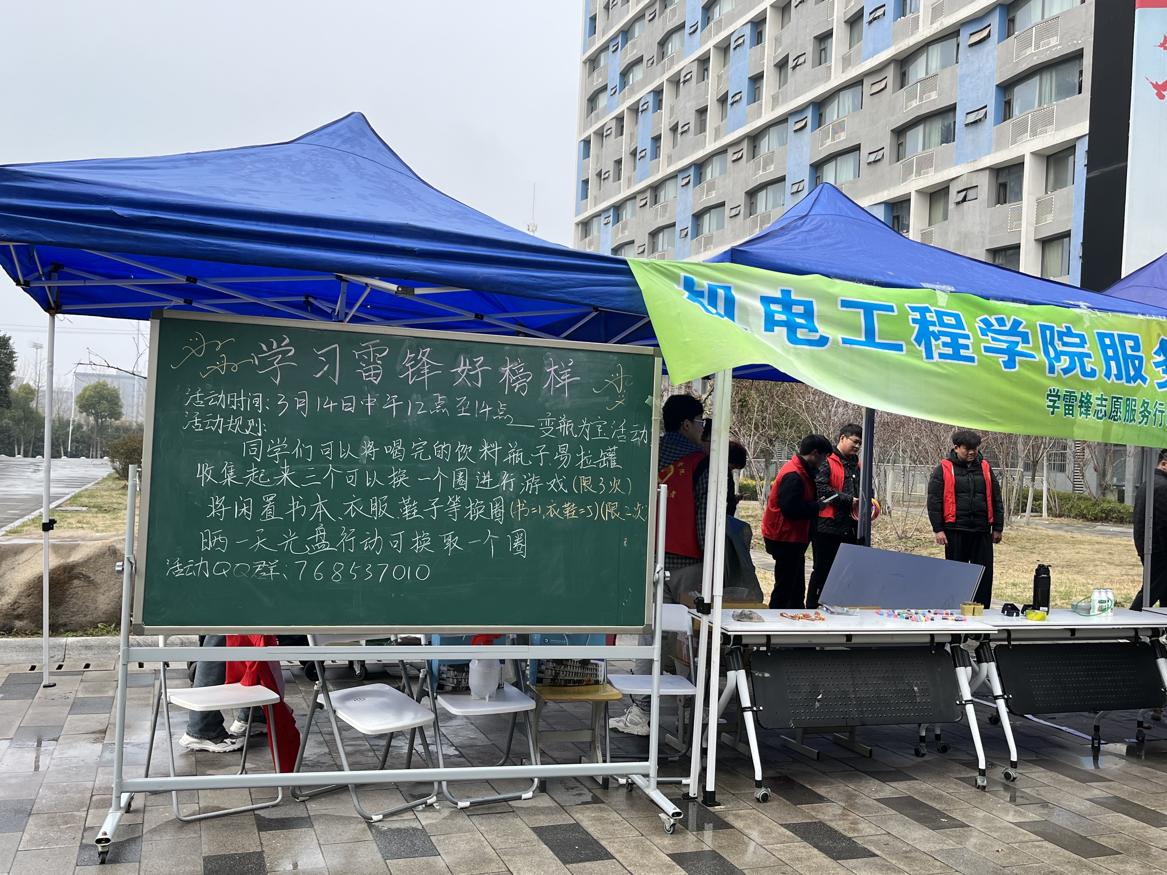 三月春风处处暖,雷锋精神伴我行。为响应学习雷锋的号召,公司员工会特别策划了学雷锋志愿服务月系列活动,此次活动以“雷锋精神伴我行 变瓶为宝树新风”为主题于3月13日—15日下午在汇心湖校区第一食堂门前举办。活动以校园垃圾变废品为宝,把收集的空瓶子和易拉罐等废品,通过分类回收,实现废物再利用。通过创意与实践,既是一种环保行为,也是对勤俭节约精神的倡导,让同学们深刻体验到雷锋精神的内涵与价值。