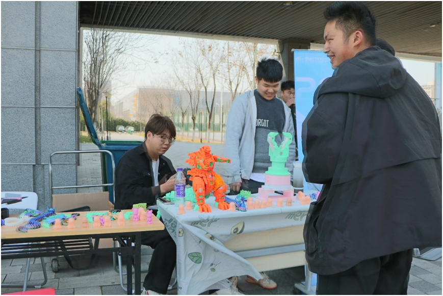 在航模展览区,陈列着30余件员工作品,既有传统橡筋动力滑翔机、电动遥控直升机,也有融入3D打印技术的飞机、水上无人机等优秀科技作品。23级机电班同学设计的“GGB号”水陆两栖航模尤为引人注目,“我们团队尝试了5种防水材料,最终用碳纤维结合热熔胶解决了机身密封问题。”