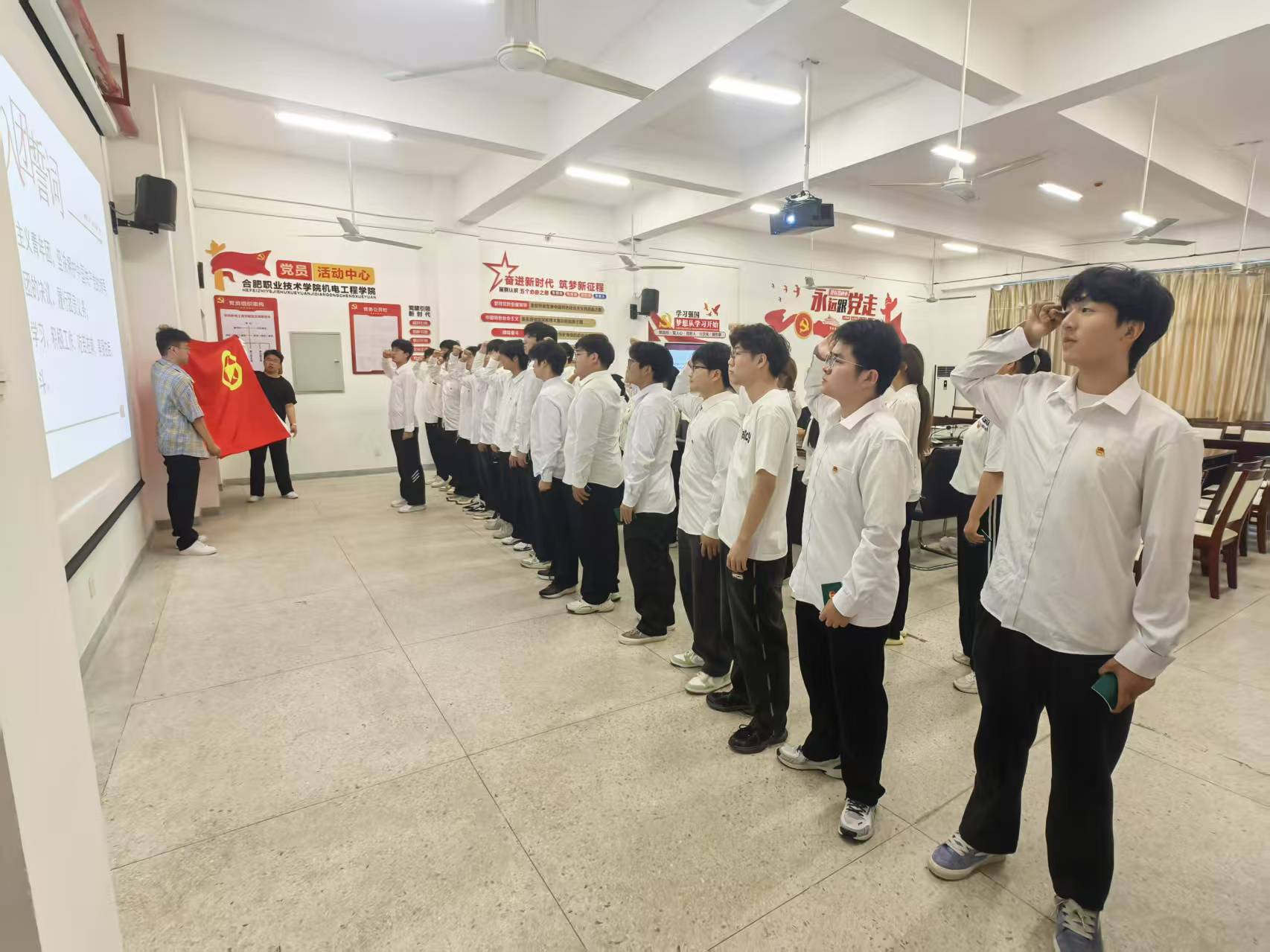 24焊接2班罗安慈同学代表全体新团员发言。他郑重承诺将铭记入团初心,严格遵守团章,认真履行团员义务,勤奋学习,勇于实践,在学习和生活中发挥模范带头作用,努力为团旗增添新的光彩。