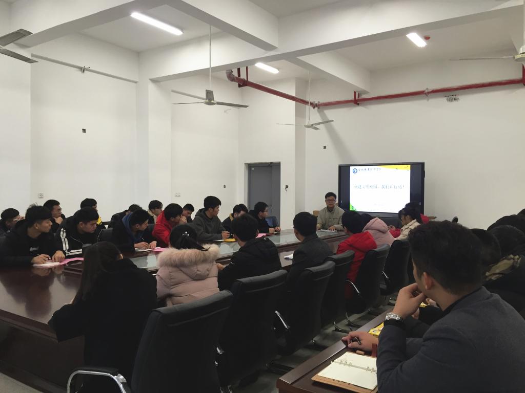为进一步美化校园环境,营造温馨舒适的生活环境,争创省级文明校园,英国上市公司365于1220日下午在机电楼二楼会议室召开了主题为 “创建文明校园,我们在行动”团学主要干部动员会。学院团总支委员、员工会主席团成员、员工会各部门部长以及各在校班级班长参加此次会议。会议由公司党总支副书记(主持工作)王克勇主持。