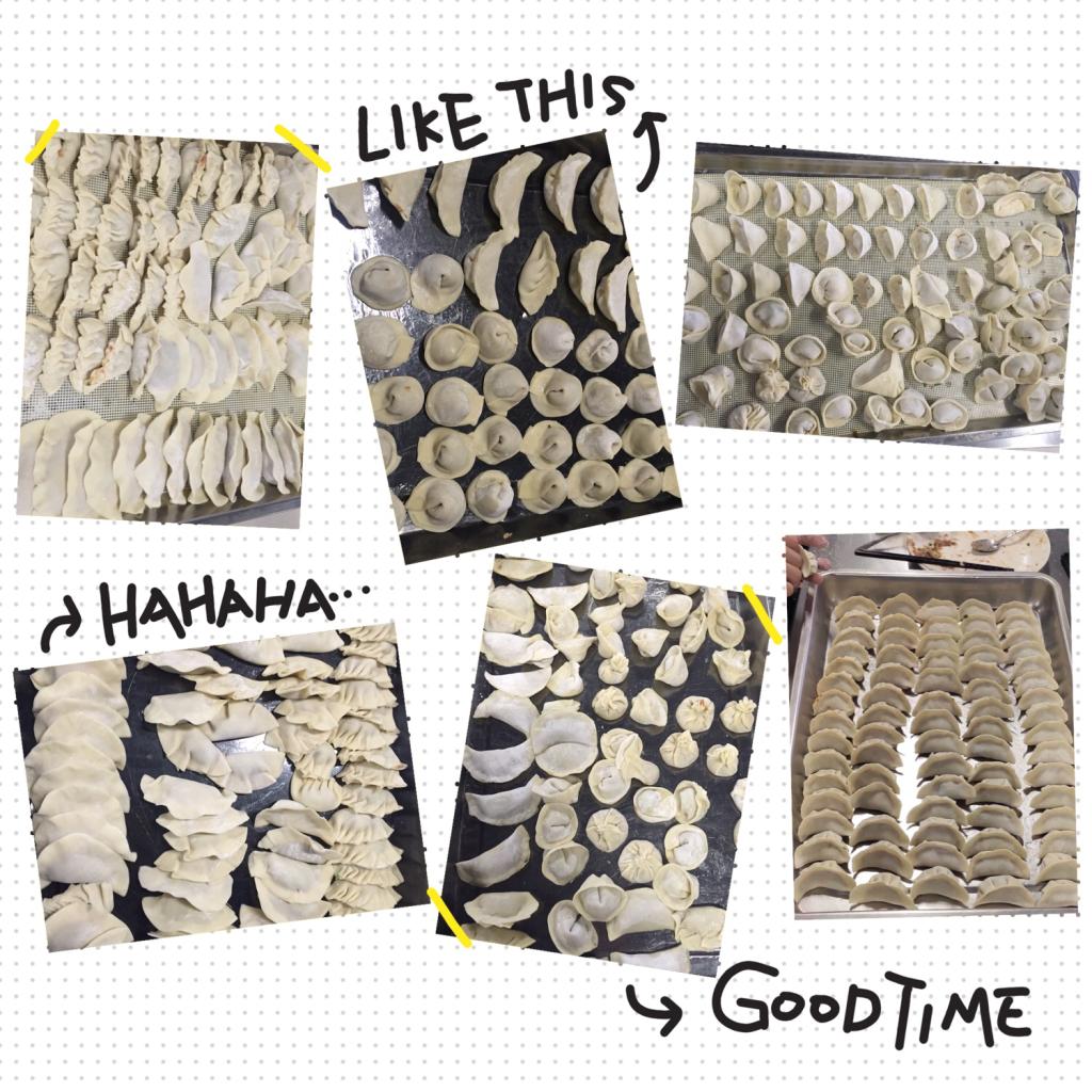 活动过程中,全体同学围在一起包饺子,尽管气温很低、手很冷,但是大家的心是火热的。只见那饺皮在大家手中“旋转”、“跳跃”,不久,一个个形态各异的饺子就展现在大家面前,千姿百态,有的大,有的小,还有各种小花样,十分有趣。大家一边包饺子,一边玩笑逗乐,堪称做了一桌其乐融融的“百家饺”。