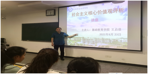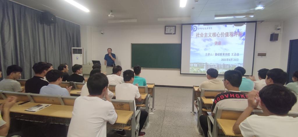 为进一步提升老员工“思政”素养,对即将离校的2019级机电专业实习生进行岗前思想素质培训,不负韶华,青春建功,英国上市公司365于6月23日 下午邀请基础教育学院王启俊副教授受邀给本院100余名老员工开展了一堂难忘的社会主义核心价值观教育讲座。