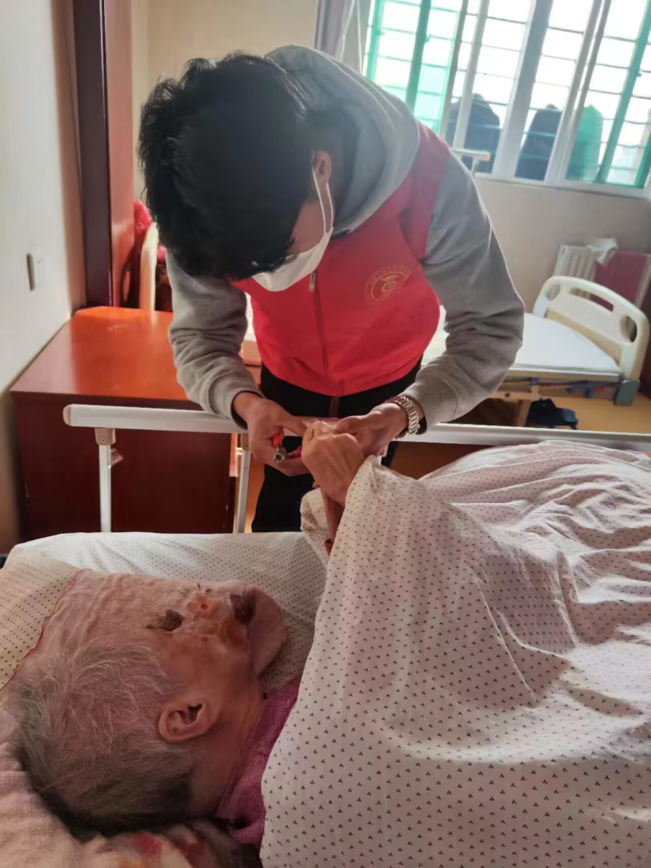 活动过程中,志愿者们拿着扫帚、铁铲、抹布等工具,打扫厨房、房间、走廊、庭院,将纸屑、枯枝树叶等杂物清理出来。在明确分工、密切配合下,工作进行得很顺利,热心的志愿者还帮老人们整理了床铺,剪了指甲,一时间敬老院里欢声笑语,其乐融融。干净整洁的庭院,温馨舒适的床铺,灿烂慈祥的笑容,纯真快乐的面孔,老年城里洋溢着老人和志愿者浓浓的真情实意,一幅幅动人的画面定格在了夕阳之下。