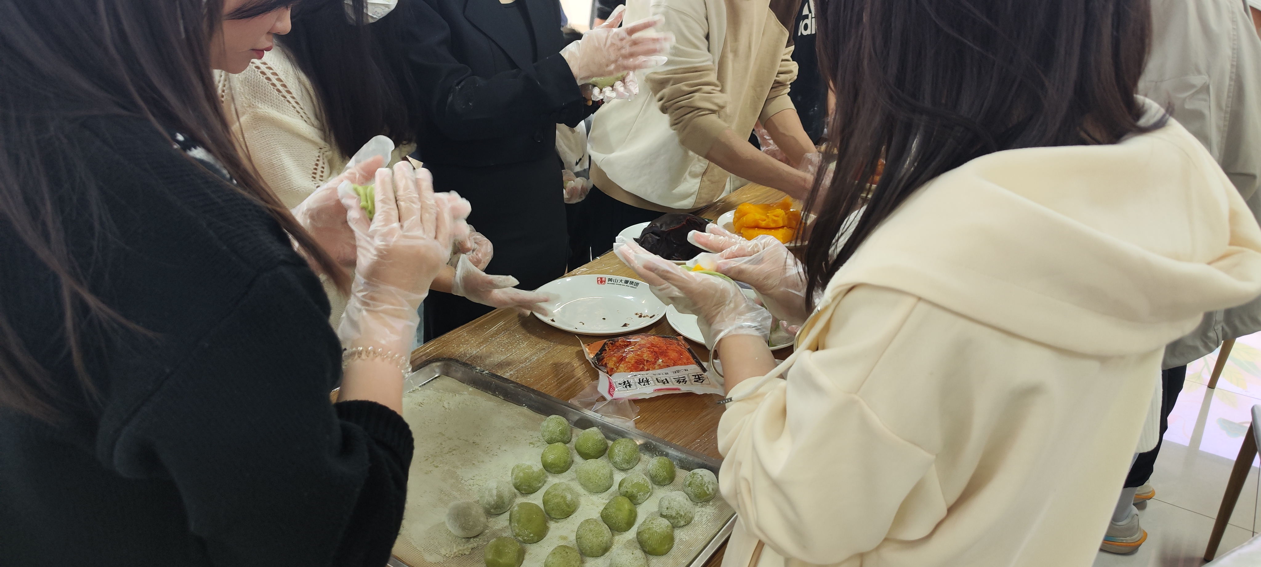 碧玉团圆满屉香,素舂柔艾捣砧忙。4月11日,公司员工会在汇心湖校区食堂一楼展开了一场别开生面的包青团活动,通过手工制作青团来体验传统美食蕴含的节日意义。