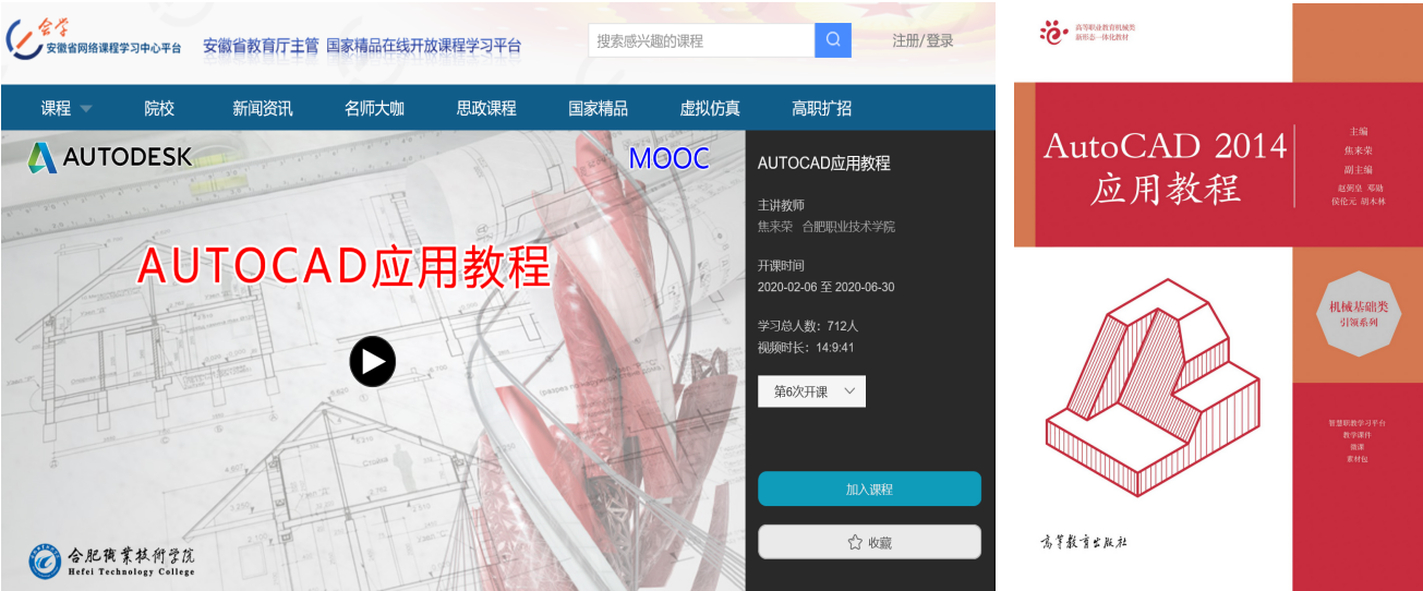 《AUTOCAD应用教程》在线开放课程(MOOC)是2015年安徽省省级质量工程项目,AUTOCAD是目前市场上最流行的计算机辅助设计绘图软件之一。具有很强的二维绘图编辑功能和三维绘图及实体造型功能,广泛的应用于机械、建筑、园林规划设计、广告、服装等领域。课程由焦来荣、胡木林、侯伦元,赵弼皇、邓勋等老师共同制作完成,放在【E会学】和【智慧职教】在线教学平台上,可为机械类、建筑类、园林设计类等专业员工及社会人员提供AUTOCAD自我学习和网上在线学习。