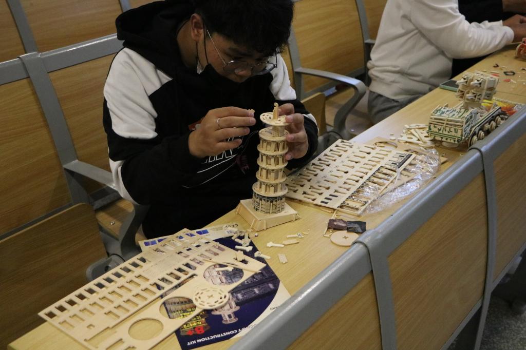 活动开展前夕,志愿者精心布置场地,模型拼装材料逐一发放到位,同学们也陆续入场,有序就座,一切准备就绪。活动开始,同学们选择自己喜爱的模型进行自由拼装,也有些同学遇到了一些难题,部分零件不知道如何安装,身边热心的同学和志愿者主动为其提供帮助,齐心协力共同完成模型拼装。
