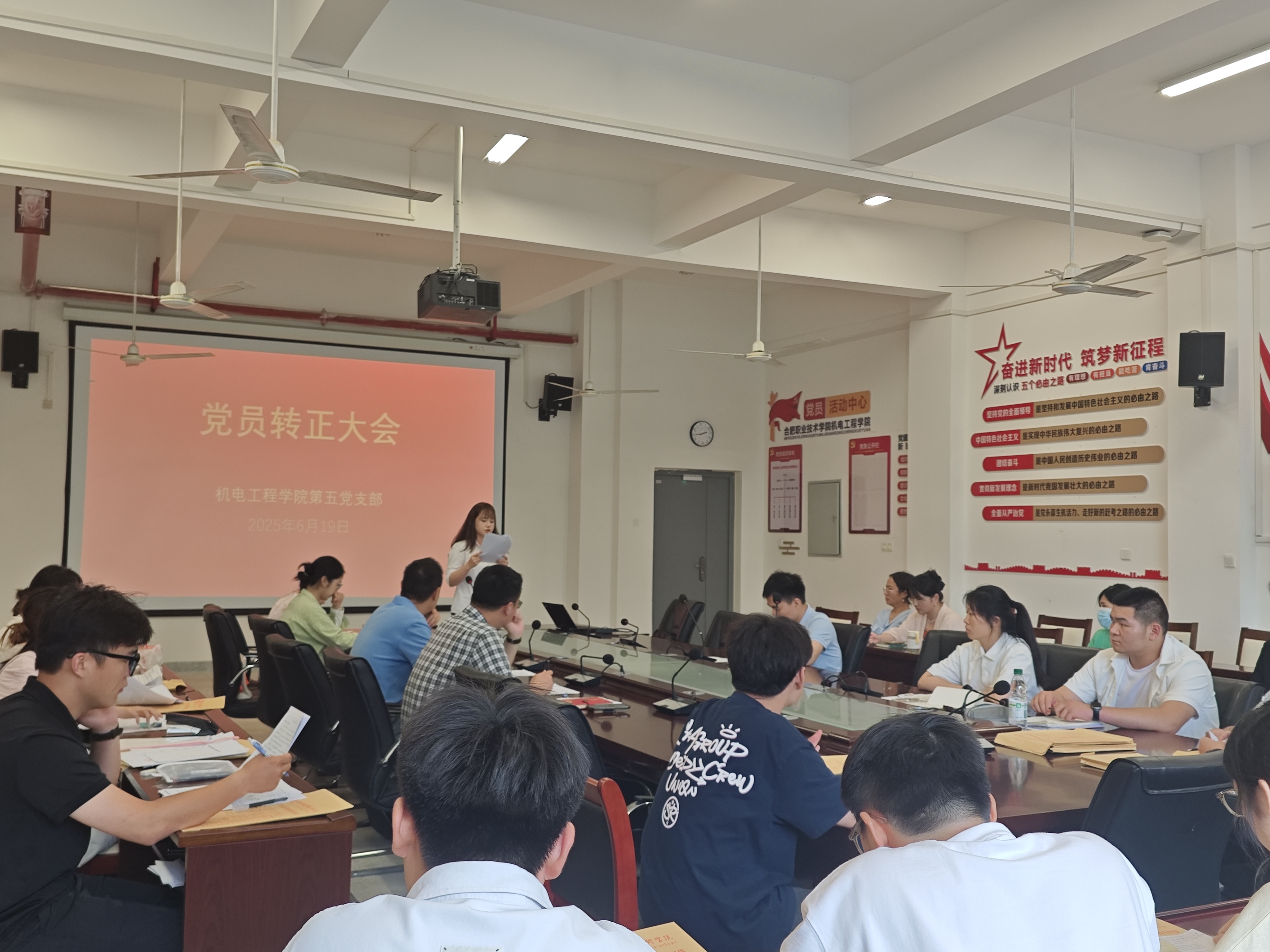 6月19日下午,公司第五党支部在机电楼二楼会议室召开预备党员转正大会。此次会议由学院第五党支部书记张开主持,支部全体党员同志及各入党介绍人参加。
